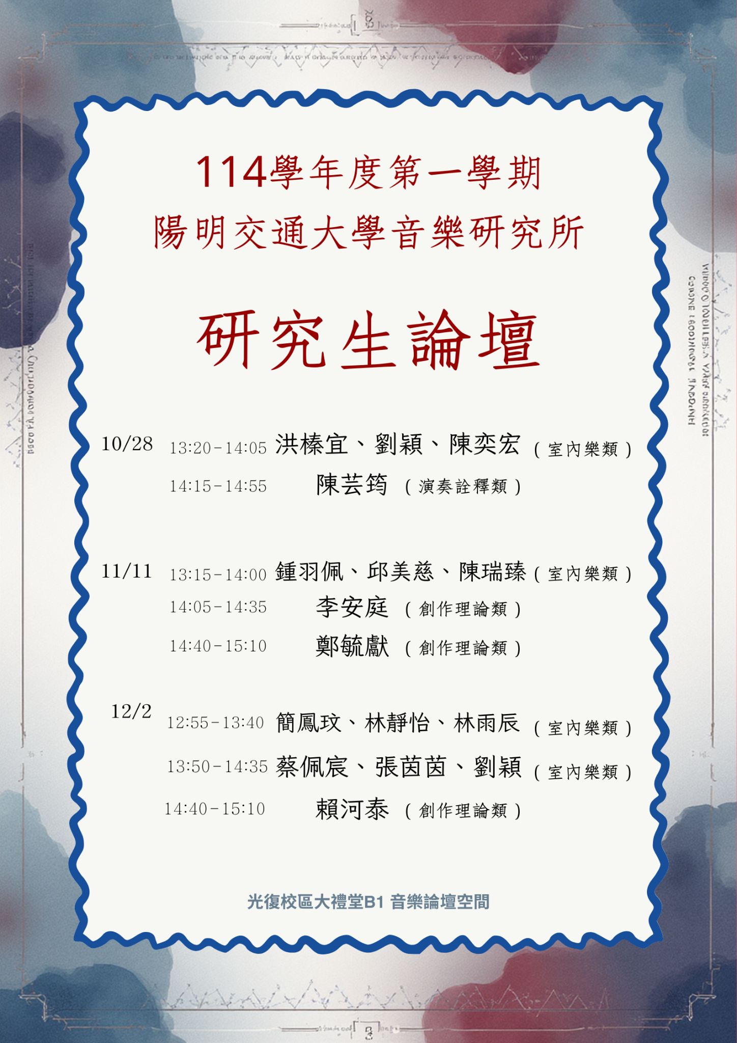 我們希望用音樂的各種形式回饋給社會,打造一個具有國際視野的陽明交通大學音樂研究所,歡迎你的加入!!!