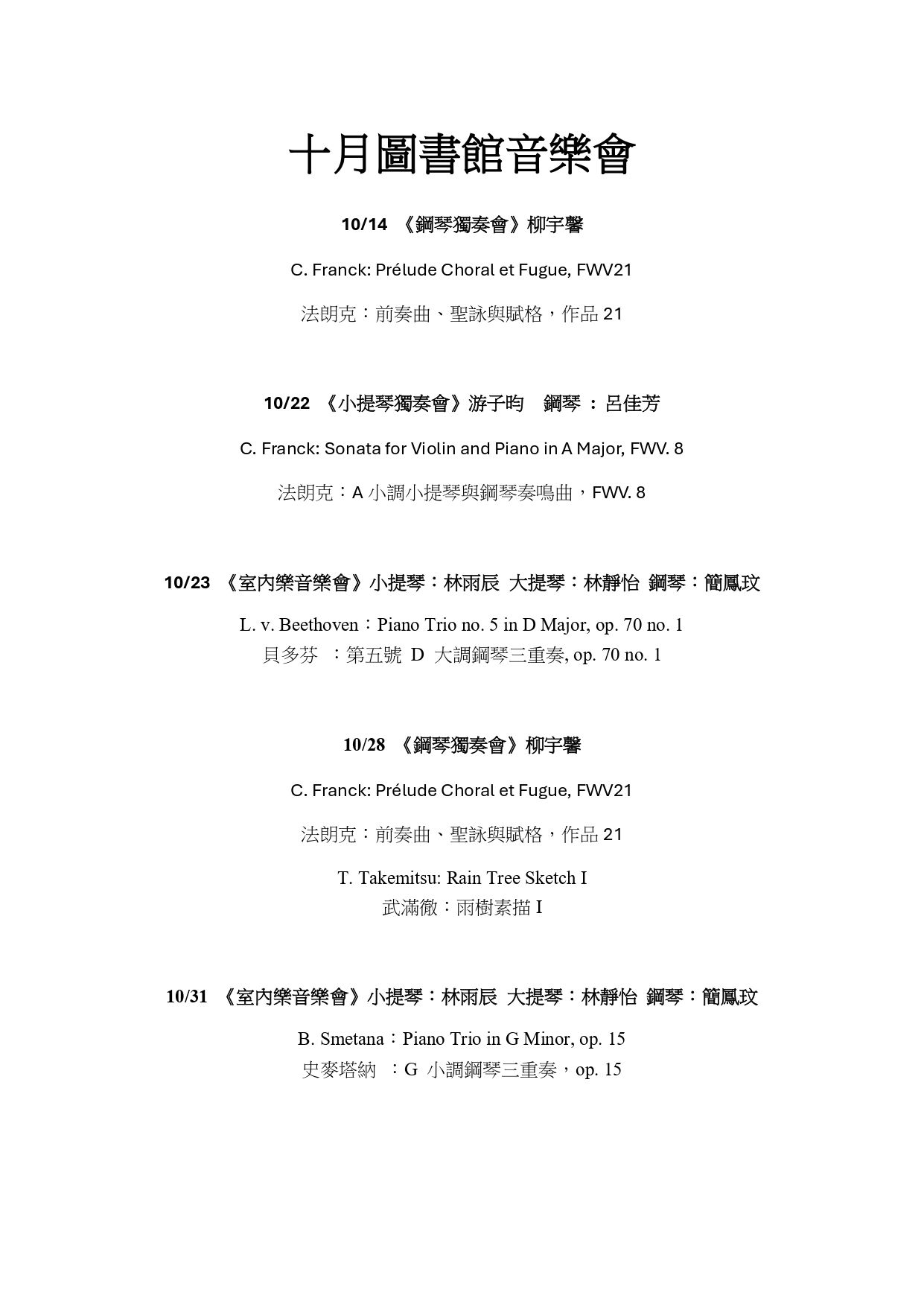 音樂所 10月 圖書館音樂會
