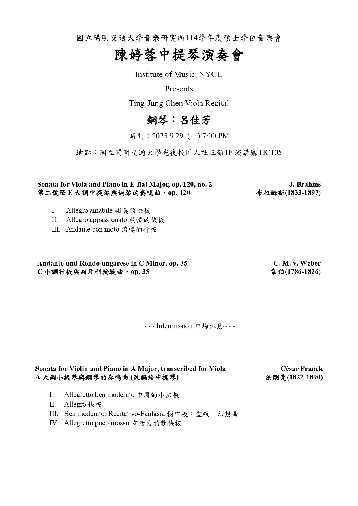 TING-JUNG CHEN VIOLA RECITAL WITH SUPPORTING DOCUMENTS RECORDING AND PROGRAM NOTES OF THE RECITAL AND RECORDING OF THE CHAMBER RECITAL