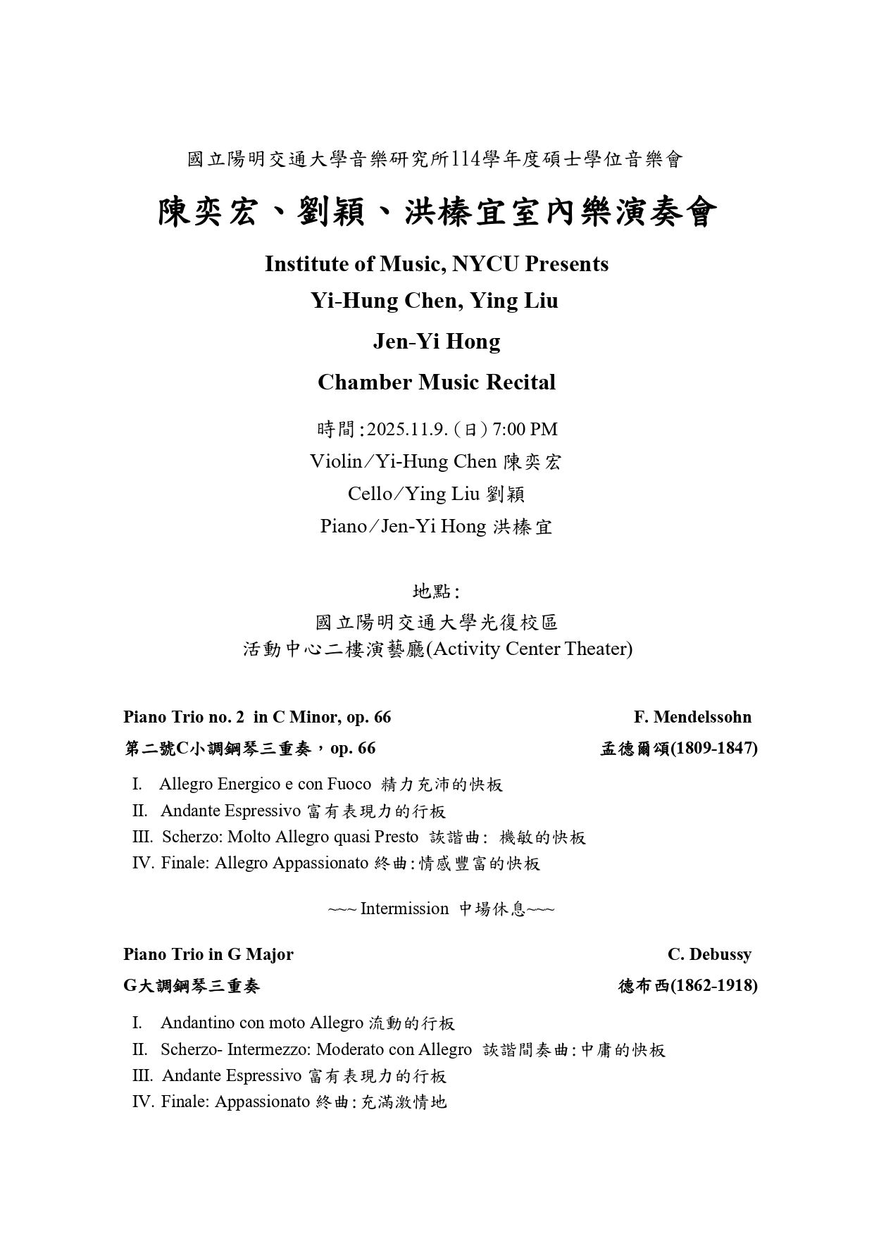 Yi-Hung Chen, Ying Liu, and Jen-Yi Hong Degree Requirement Chamber Music Concert
