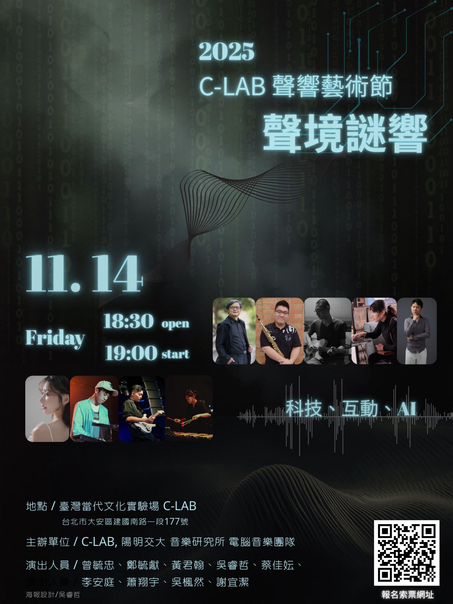As the 2025 C-LAB Sound Festival enters its latter stages, the Computer Music Team from the Institute of Music, National Yang Ming Chiao Tung University, presents Mysterious Sound Realm—a concert featuring technology-driven musical interaction, AI music co-creation, data-driven processes, live coding, and immersive sound experiences.