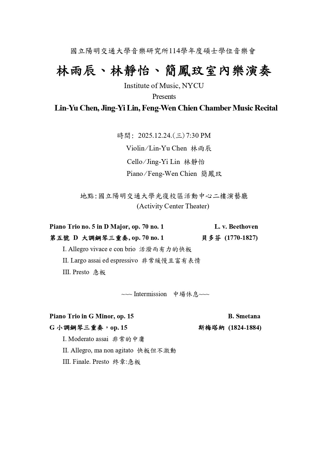 Lin-Yu Chen, Jing-Yi Lin, and Feng-Wen Chien Degree Requirement Chamber Music Concert