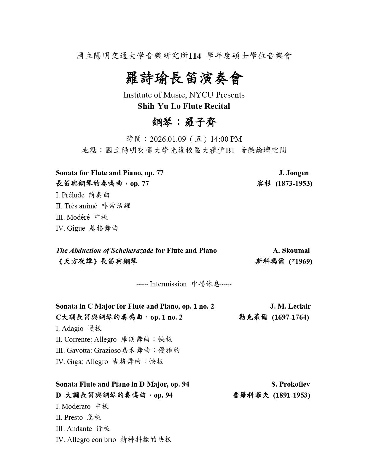SHIH-YU LO FLUTE RECITAL WITH SUPPORTING DOCUMENTS RECODING AND PROGRAM NOTES OF THE RECITAL AMD RECORSING THE CHAMBER RECITAL